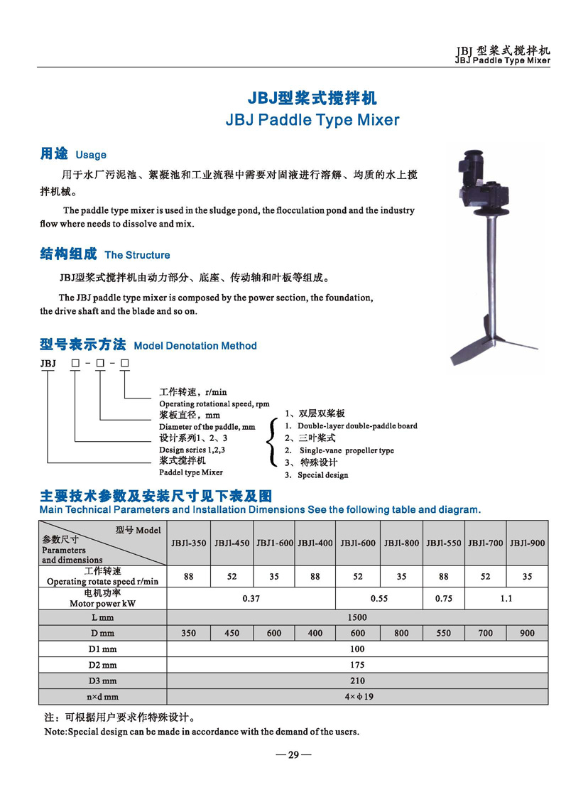 JBJ型槳式攪拌機(jī)