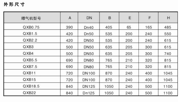 QXB型潛水離心式曝氣機(jī)采用電機(jī)和葉輪直接傳動(dòng),利用葉輪旋轉(zhuǎn)所產(chǎn)生的離心力排開(kāi)周?chē)纬傻蛪簠^(qū)吸入水流同時(shí),在葉輪進(jìn)口處制造真空而吸入空氣,在混氣室中氣與水充分混合形成均勻的氣水混合液,在離心力作用下快速排出。