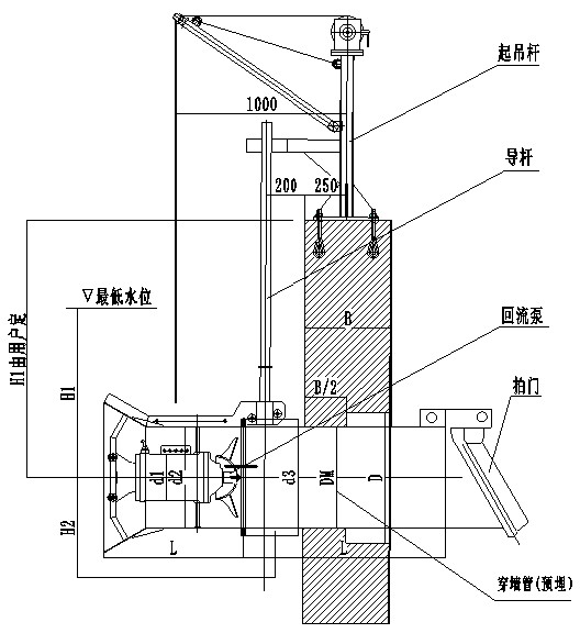 五、潛水回流泵的安裝系統(tǒng)圖: