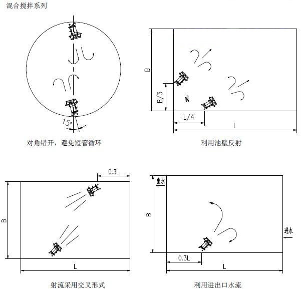 混合系列攪拌機,適用于污水處理 廠和工業(yè)流程中攪拌含有懸浮物的污水、污泥混合液、工業(yè)過程液體等,創(chuàng)建水流,加強攪拌功能,防止污泥沉淀及產生死角,溝內流速不低于0.1m/s。
